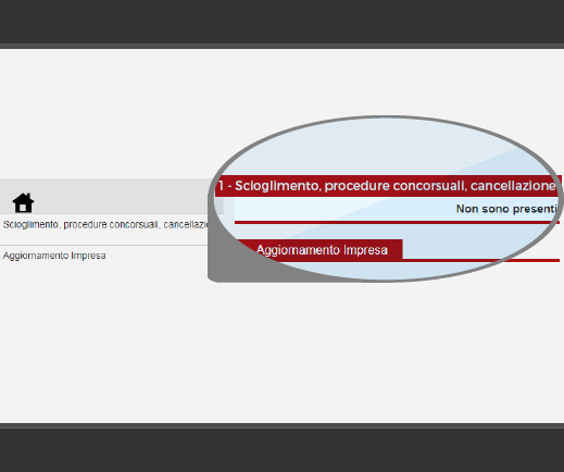 Ad esempio, nella sezione SCIOGLIMENTO, PROCEDURE CONCORSUALI, CANCELLAZIONE